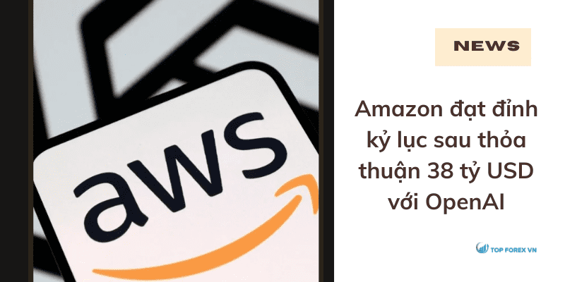 Topforexvn.com – Cổ phiếu Amazon tiếp tục bứt phá mạnh mẽ, tăng 14% chỉ trong hai phiên giao dịch, đánh dấu chuỗi tăng mạnh nhất kể từ tháng 11/2022. Động lực chính đến từ thông tin OpenAI ký thỏa thuận trị giá 38 tỷ USD với Amazon Web Services (AWS), mảng dịch vụ điện toán đám mây của gã khổng lồ thương mại điện tử.